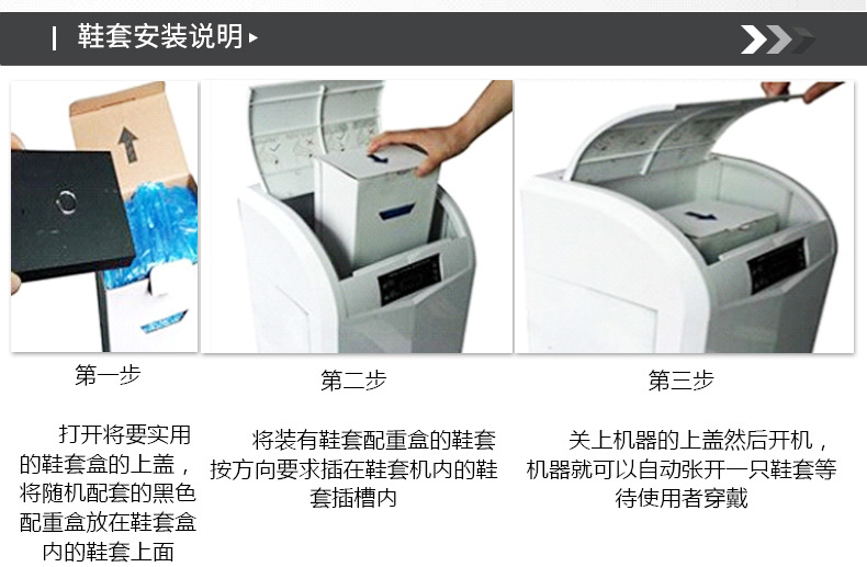 1:更换鞋套快速方便,5秒快速完成;最大预存鞋套200只,无需频 繁更换; 智能型电子技术; 故障自动报警